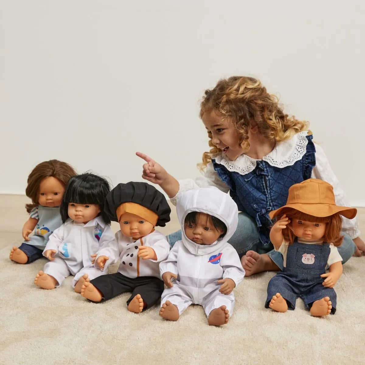 Ontdek het kokskostuum voor Miniland-poppen van 38 cm, perfect voor de kleintjes om te fantaseren en plezier te beleven aan het bereiden van heerlijke gerechten tijdens hun fantasierijke spel. Deze set helpt je de wereld van de beroepen op een leuke en leerzame manier beter te begrijpen. Een must-have om spelenderwijs te leren!